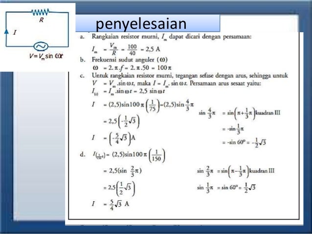 I=v/r=vm/rsin ωt i=im sin ωt vm = tegangan maksimum im dan vm menyatakan nilai maksimum dari arus dan tegangan. Materi ini merupakan salah satu materi yang dipelajari pada mata pelajaran fisika ipa baik. Tegangan pada saat t = 0,0024π sekon. Persamaan e and v di atas sesuai dengan persamaan simpangan pada gerak harmonik sederhanan, yaitu x = a sin wt. Balik adalah sebuah kumparan berputar dengan kecepatan sudut ω yang berada di dalam medan magnet.