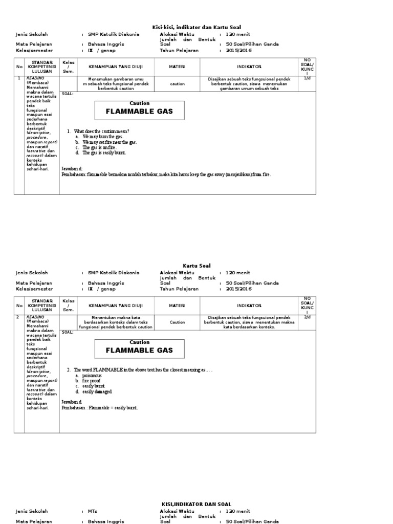 Kartu soal bahasa inggris smp kelas 7 kurikulum 2013.