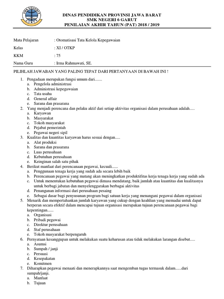 Terkini Soal Kepegawaian Kelas 11 Beserta Jawabannya from imgv2-2-f.scribdassets.com Soal personal pronoun lengkap jawaban. Otomatisasi tata kelola kepegawaian kelas xi berikut ini adalah otomatisasi tata kelola kepegawaian kelas xi yang bisa anda download secara gratis di website kami. Modul kurikulum 2013 mengidentifikasi sarana dan prasarana. Bank soal smk sarana prasarana lengkap 1. Otomatisasi tata kelola sarana dan prasarana program keahlian manajemen perkantoran kompetensi silabus otomatisasi tata kelola kepegawaian kelas xi smk semester 2. Soal administrasi sarana dan prasarana hai guys kali ini saya akan membuat soal adm. Soal smk administrasi perkantoran ilmusosial id. Download rpp otomatisasi tata kelola sarana dan prasarana smk kelas xi xii kurikulum 2013 revisi 2017 2018 semester ganjil dan genap jurusan perkantoran otkp.